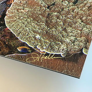 Archival fine art print on Aluminum composite with satin anodized aluminum backing frame.