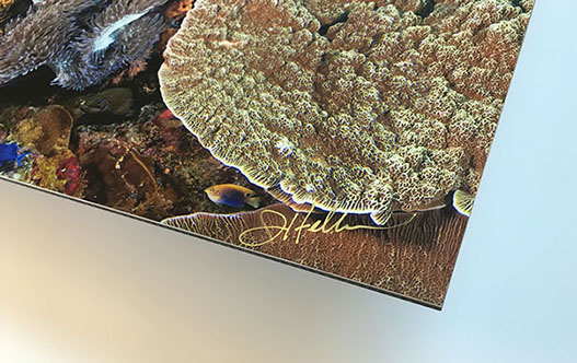Archival fine art print on Aluminum composite with satin anodized aluminum backing frame.